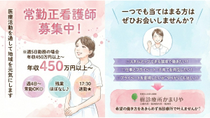 【採用条件】・看護師免許・普通運転免許・年齢不問・性別不問【試用期間】・あり2ヶ月・・・状況により更新あり 試用期間中の条件変更なし【契約期間】試用期間終了後は定年まで期間の定めなし |